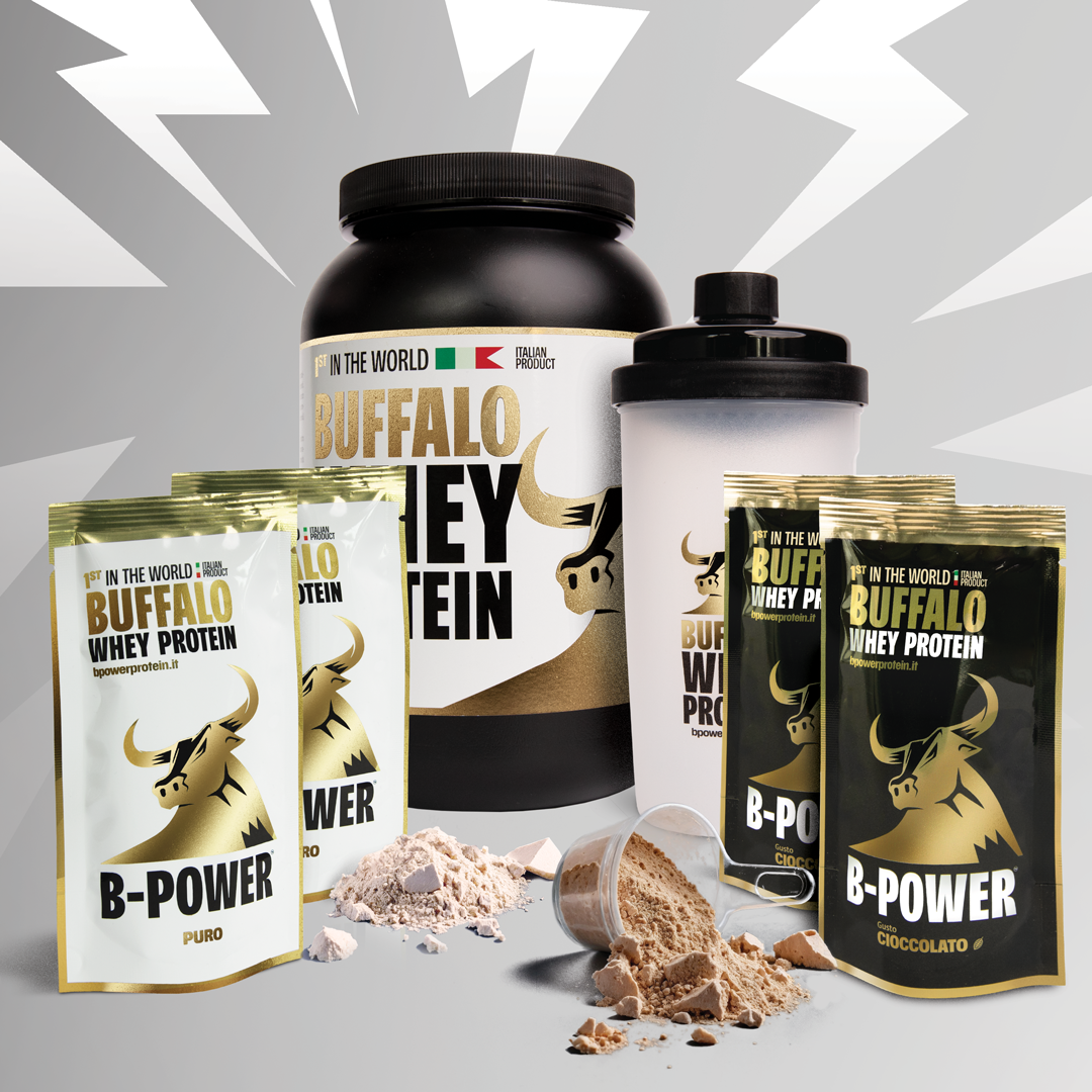 B-POWER is a very high quality product that ensures 24g of Protein and 5.5g of BCAA , without flavourings or preservatives, GMO-free and enriched with B vitamins which promote energy metabolism and Vitamin D for healthy and strong bones.