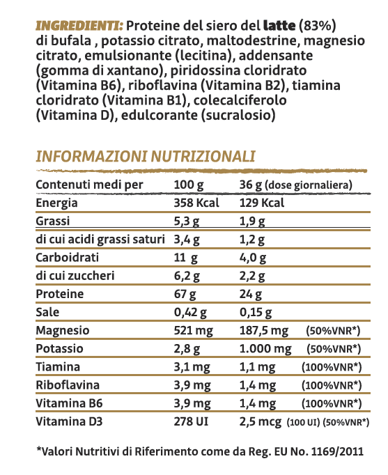 100% Italian Proteins from Buffalo Milk Whey DOP